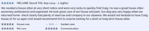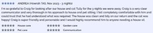 “We recently had the good fortune of finding Craig at Craig’s House Sitting! From the first point of contact, Craig was friendly, professional and very flexible. We were reassured that our dog was being left in safe and caring hands and our home was left spotless. We will be using Craig again and highly recommend his service.”