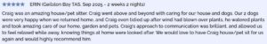 “Finding Craig was a ‘gift’! We are not the type of people that feel comfortable leaving our home and dog with just anyone, there are lots of reasons for this, and I think one is the feeling of being vulnerable on different levels. We did not feel this at all! Craig is a warm person and establishing rapport is easy! Arriving home was a treat, dog and garden was in great condition! House was ‘cleaned’ linen was “washed’, food for the dog was ‘ready and thawed’. He harvested the garden and there were fresh veggies waiting! We would recommend Craig – in fact we already have! It is like having a friend come into your home to care for it!”