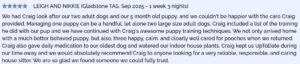 “My family and I highly recommend Craig to anyone in search of a high-quality, professional, and reliable house/pet sitting service. Craig has open and honest communication which we love. Craig is flexible when it comes to meeting your families and pets requirements. Our house was left spotless and our two dogs were happy!”